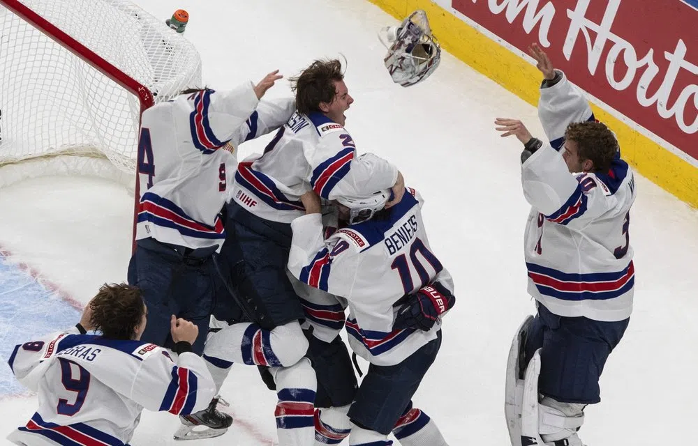 EDMONTON, Alberta — Spencer Knight made 34 saves, Trevor Zegras had a goal and an assist, and the United States topped Canada 2-0 on Tuesday night to win the world junior hockey championship.