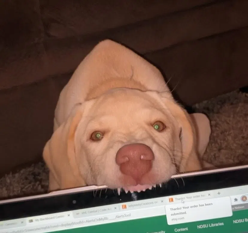 When Mabes was a puppy, she loved to chew on electronics. She cracked my computer touch screen on this occasion. As you can guess, I had to upgrade my laptop after this incident.
