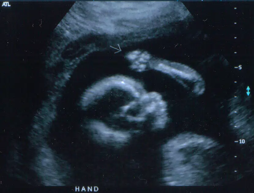 She jokes that her daughter has already got an attitude but in another shot from the ultrasound her baby girl seems to apologize with a peace sign.(Apology Peace Sign Photo)