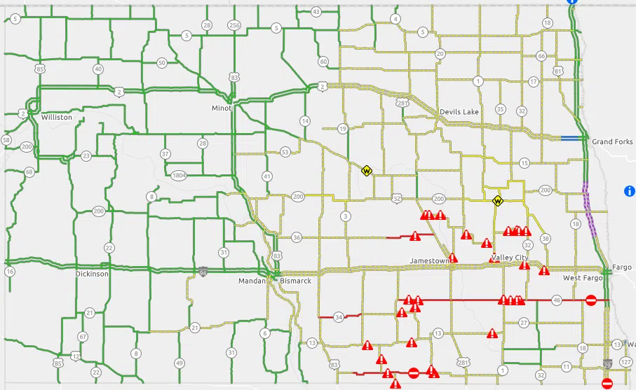 Several other stretches of highways have closed in southeastern North Dakota. That includes Highway 46 between I-29 and Highway 30 and Highway 281 between Jamestown and the South Dakota border.
