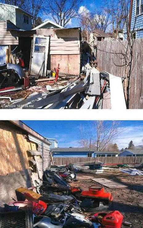 City Inspections Director Shawn Ouradnik said the detached garage, likely built in the late 1940s, located at 421 15th Avenue North, was heavily damaged by fire in November of 2019 and met most of the city criteria required for a dangerous structure.