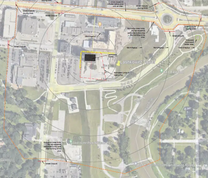 FARGO (KFGO) – The implosion of the Lashkowitz High-Rise is scheduled for 7 a.m. on Saturday.